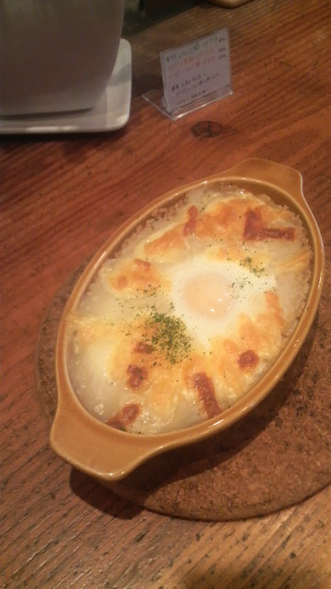 あと、最近毎日のようにドリアをつくってみてます。お酒を軽く飲みながらご飯もとれたらいいなあ とか色々考えてみて、ドリアとかなら合うかもしれないという思い付きでした。まだメニュー化するかどうかはわかりませんが、結構おいしいものですね。 |