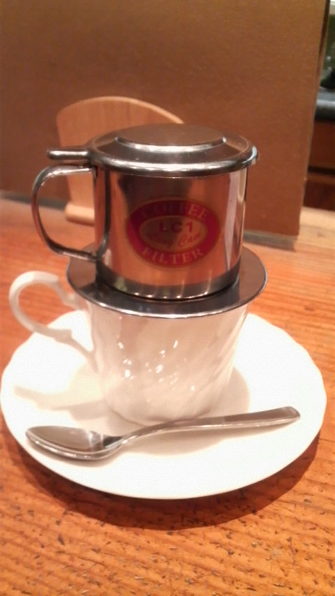 コーヒーは胃に悪いとかカフェインが入ってるからダメとかいう声をたまに聞くことがありますが、実際は動なんでしょうね。私個人としてはまったくコーヒーが原因で健康を害したことはないのですが、もちろん体質とか量とかにより異なることもあるかと思います。 胃炎、胃潰瘍、十二指腸潰瘍など粘膜の炎症により起こる消化器系の病気がある場合、コーヒー中のタンニンが患部を刺激し、特に熱いものはよくありません。 逆に、コーヒー中のカフェインは消火器の活動を促すので、食後に適量のコーヒーを飲むことは、胃のもたれなどを除く効果もあります。また、カフェインには脂肪を分解する働きもあり、カロリーの高いものを食べた後に飲むなどすると効果的です。しかし、現在胃をこわしている人がコーヒーで治るというものではないとのことです。 コーヒーが好きだけど胃に負担がかかるといった経験のある方は、体調に合わせてコーヒーの濃度を調節したり、何倍もガブ飲みするようなことを控えるなど、それぞれの状態に合わせることが大切なようです。また、コーヒー2~3杯からのカフェイン量は全くの問題がなく、むしろ適度なカフェインは薬効があるために、正しく知って楽しくコーヒーを飲むのが肉体的にも精神的にもいいですね。 個人的には、飲み会のあとなどお酒を飲んだあとにコーヒーを飲みたくなるのですが、調べてみると、これは効果的だそうです。アルコールから変化したアルデヒドを速やかに二酸化炭素と水に分解し、体外に排出する作用を促すのだそうです。この点は紅茶や緑茶にも当てはまるということなので、飲んだあとはラーメンよりコーヒーやお茶をオススメです! みなさんは、ベトナムコーヒーを飲んだことってありますか? 以前、ベトナム旅行をする方にお願いして買ってきてもらったベトナム式コーヒーのフィルターとコーヒー粉が店にあります。しばしば、淹れかたの練習と自分の楽しみのために飲んでいますが、かなりおいしいものです。 ぜひお店に来ていただいたときにこのコーヒー粉の香りを試して欲しいのですが、まるでココアのように甘い香りがします。普段使っている豆はこのような香りではないのにどうしてだろうと色々調べていると、その理由は焙煎方法にあるようです。 一般的にはベトナムのコーヒーは「バターロースト」という方法で焙煎されており、これが独特の香ばしく甘い香りを作っているようです。焙煎度合いとしては、「フレンチロースト」または「イタリアンロースト」で、非常に深煎りです。 現地ではコンデンスミルクを入れて飲むのが一般的で、かなり甘くですが深煎りだけにしっかりコクもあり、苦いものが苦手という方でも美味しくいただけるのではないでしょうか。私は、缶コーヒーをもっと深く濃く味わい深いものにした感じだと思いました。 ベトナムコーヒーの豆は、一般的なコーヒー豆屋さんで売ってるところをみたことがまだないので、色々と調べて売っているお店を探すか、インターネットを利用して購入し、できればメニュー化したいと思っております。 毎日のように色んなメニューを試しており、今日もドリアの試食をしましたが、基本的にはコーヒー屋さん っていう意識があるため、通常のお店のことに加えて今後はコーヒーについてのあれこれなど、わかりやすく書いていきたいと思います。